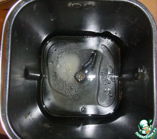 Влить в чашу хлебопечки масло, воду, всыпать соль, сахар.