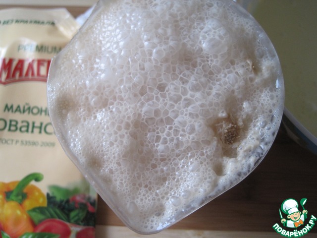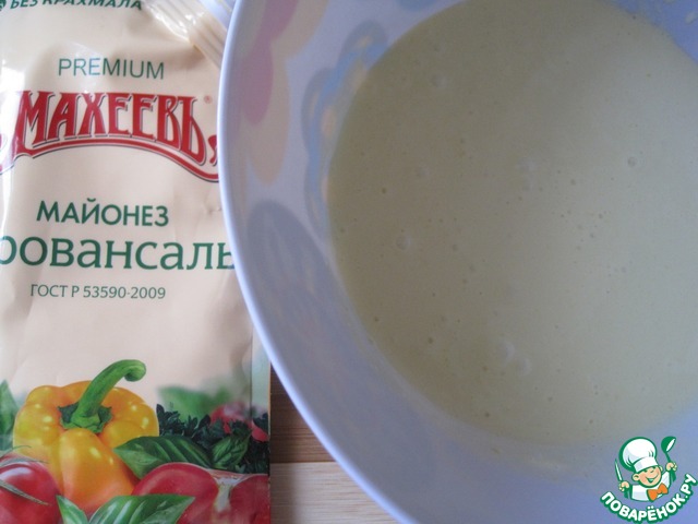 В отдельной посуде смешаем яйцо, майонез, уксус, соль, масло.