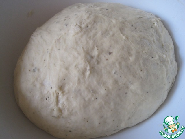 Муку смешаем с прованскими травами. Я на всякий случай начала замешивать тесто с 480 граммами муки, но в итоге мне понадобилось чуть больше муки, чем заявлено в рецепте. В общей сложности я использовала 550 грамм муки+ горстка на подпыл.