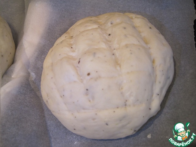 Я сформовала круглые булочки, сделала надрезы, имитируя черепаший панцирь, переложила булочки на противень, укрыла и поставила на расстойку. Уже через 10-ть минут мои красивые нарезы превратились в нечто страшное. Думала-гадала, как же сделать аккуратно.. И придумала.. Заново сформовала булочки и острым носиком ножа сделала не нарезы, а скорее "наколки". Просто обозначила будущую сеточку-панцирь. И так, укрываем и оставляем для расстойки на 20-ть минут (или до увеличения в объёме). А пока включаем духовку на разогрев t 210 градусов.