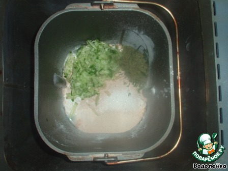 Огурец трем на терку и немного отжимаем. Дальше укладываем ингредиенты в ведерко ХП так, как нужно по инструкции. Ставим режим основной хлеб (у меня 3 ч.40 мин.), корочка - по желанию, буханка получается около 500г.