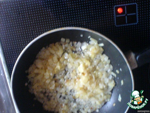 У меня не было сухого лука, я взяла обычный, нарезала и обжарила