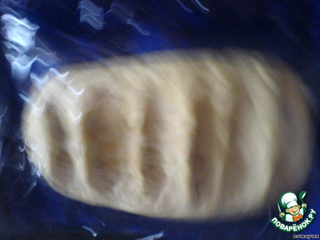 Тесто наше готово, мы достаем его из хлебопечки и выкладываем на стол, подпыленный немного мукой