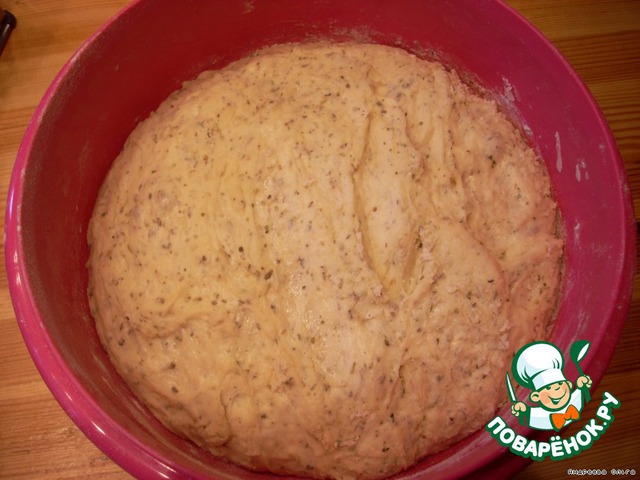 когда начнут пениться, добавить оливковое масло, соль, травы, муку.