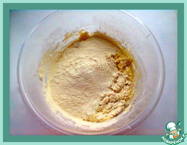 Когда шапочка поднялась добавляем просеянную муку и соль.