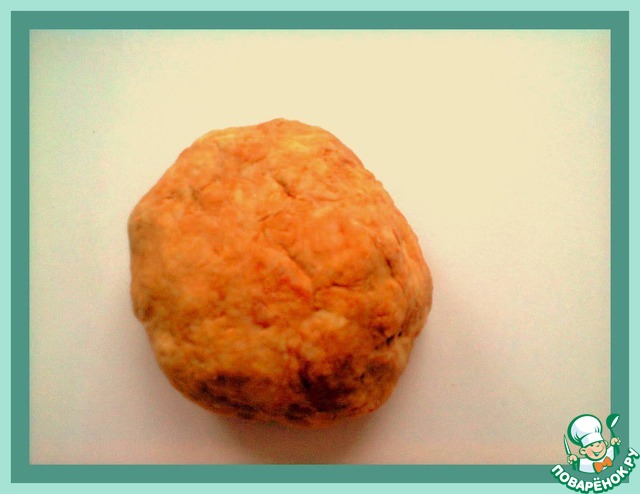 Одна часть у нас остается белой, а во вторую добавляем томатную пасту и вмешиваем ее. Если тесто начнет липнуть к рукам, то добавьте 1 ст. ложку муки.