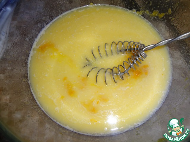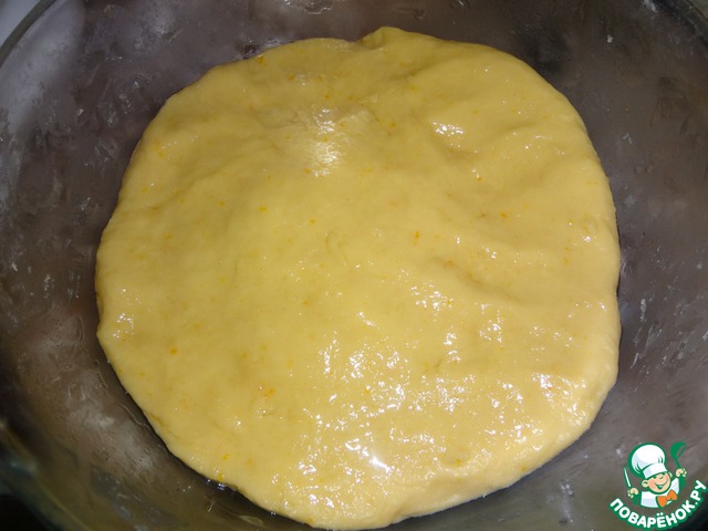 Добавить сахар, соль и размягчённое сливочное масло. Последним ввести цедру с одного апельсина, снятую на мелкой тёрке, для аромата. Можно цедру лимона.