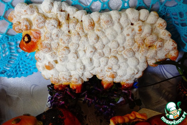 Когда барашек испечётся, посыпьте ему "руно" сахарной пудрой.