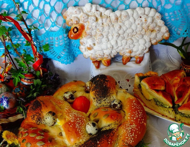 | Итальянцы традиционно жарят на Пасху барашка. Ну, поскольку баранины у меня не оказалось, я решила испечь барашка из сладкого дрожжевого теста. Они тоже, кстати, это часто делают. Барашек получился очень симпатичный и вкусный, хотя мы его ещё не съели, но булочки из остатков теста мужу перепали. Чем он остался очень доволен. |