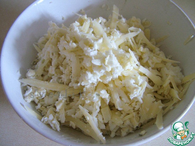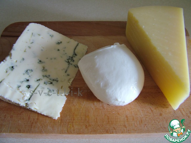 Для прослойки используем три итальянские сыра - горгонзоллу, моцареллу и пармезан.