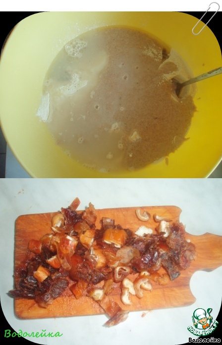 Итак: смешиваем все ингредиенты (кроме фиников) и замешиваем тесто. Вначале я замешивала лопаткой, а когда оно приобрело более упругую консистенцию, выложила на стол, посыпанный мукой, и месила там минут 5.