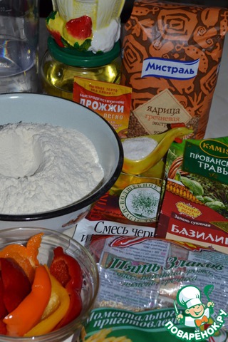 Заложить все продукты (кроме болгарского перца, базилика, прованских трав и жгучего перца) в ведерко хлебопечки. Выбрить режим "Основное тесто" или "Тесто"