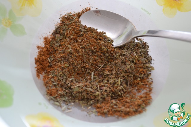 Пока замешивается тесто, перемешаем в чашке жгучий перец, базилик и прованские травы.