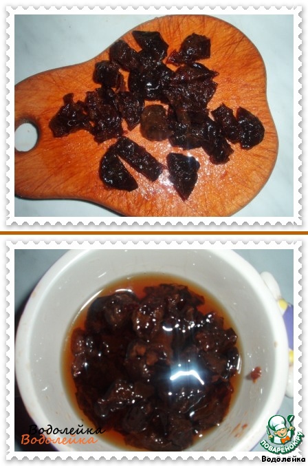 Первым делом замачиваем чернослив. Порезать его на кусочки и залить ромом (или коньяком) так, чтобы чернослив был покрыт ромом. И оставить, как минимум на 1 час. А можно даже на всю ночь.
