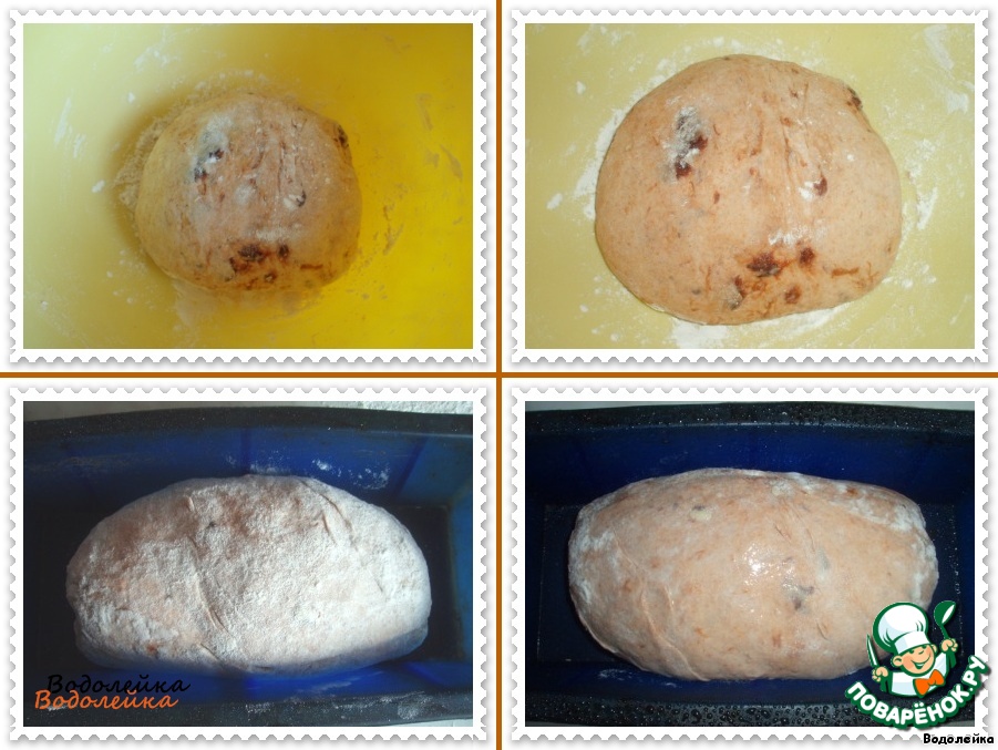 По истечению времени тесто обмять, разделить на две части и сформировать буханку (форма по вашему желанию).