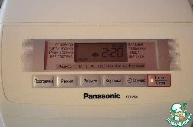 Поставить ХП в режим «основной замес теста». Если нет ХП, то вымесить тесто вручную, и отправить в теплое место на 2 часа.