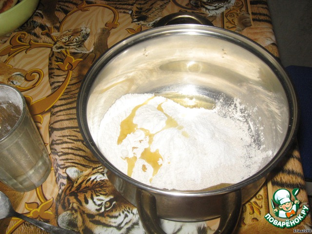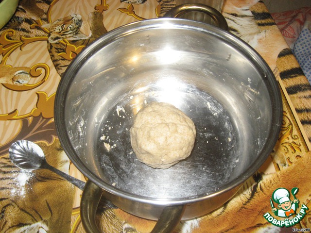 Вливать воду по чайной ложке и замесить эластичное тесто, оно будет немного крошиться при раскатке.