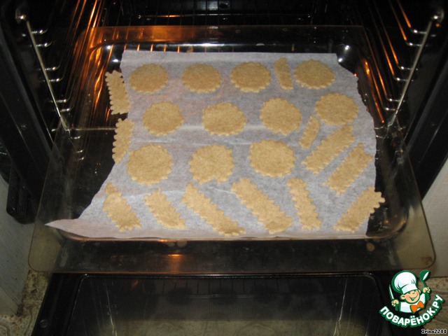 Раскатать тесто и произвольно выдавить кружочки (или порезать на полосочки).