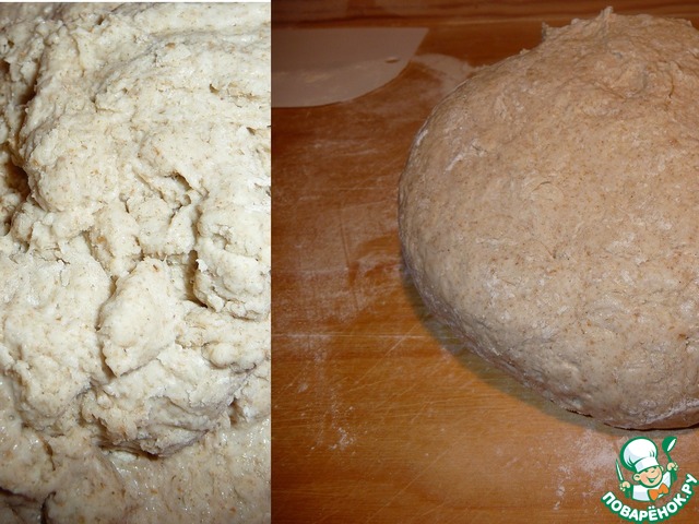 Мягкое тесто выложить на слегка подпыленную мукой доску и вымесить тесто, слегка припыляя мукой руки.