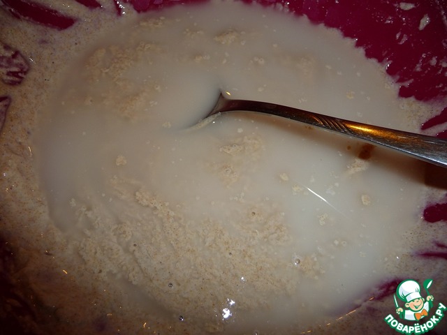 Готовим безопарное тесто. В воде растворить соль, патоку, влить в закваску и развести ее.