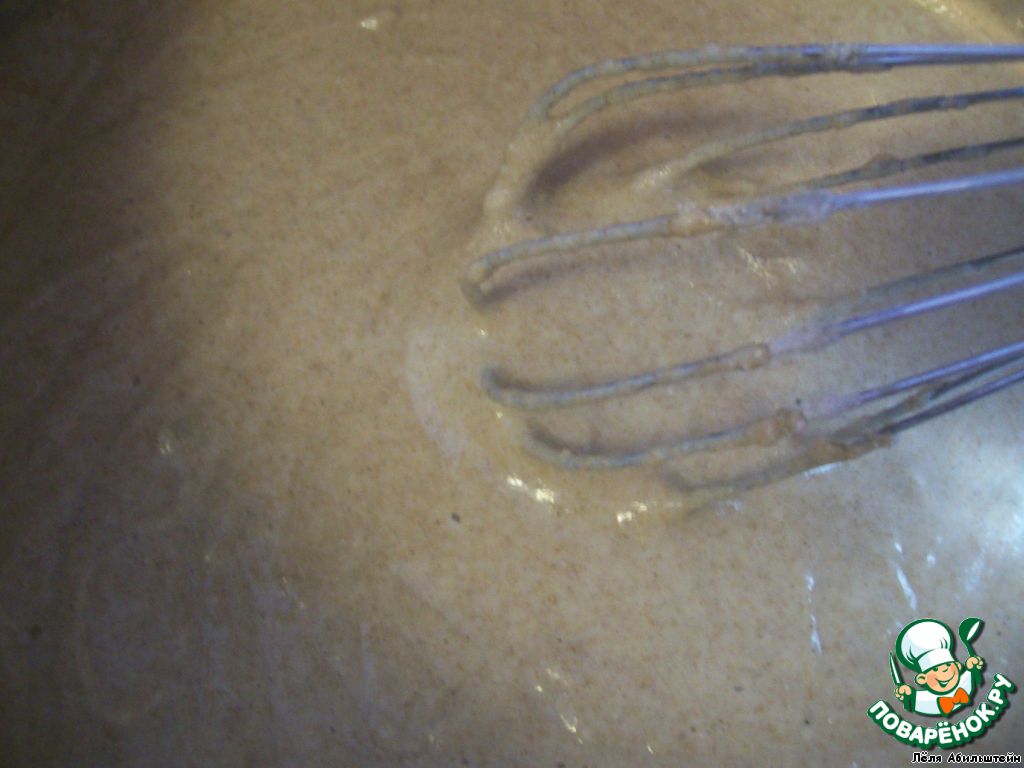 Затем добавляем оставшийся сахар, соль и пшеничную муку. Вымешиваем тесто. Оно должно получиться не очень густым. Как написал автор этого рецепта, тесто должно "тянуться лентами". Т.е. когда вы поднимаете кусок теста, оно должно не выливаться из руки и не падать комком, а как бы тянуться. Поначалу меня это удивило, так как я привыкла, что тесто для хлеба должно быть достаточно густым.