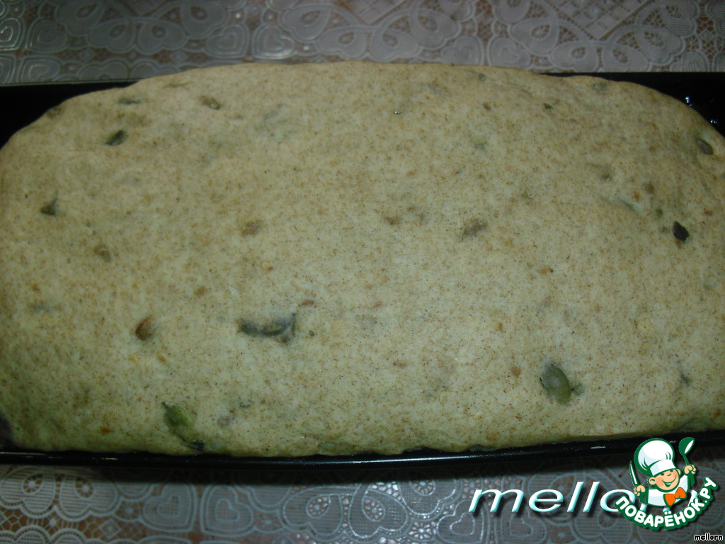 Поднявшееся тесто выложить в форму, смазанную небольшим количеством растительного масла.