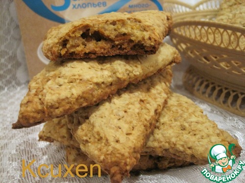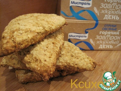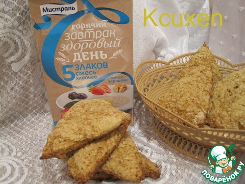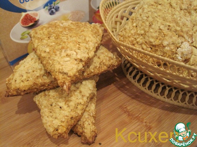 Изначально сконы выпекались на сковороде целой лепёшкой и только потом разрезались на треугольные куски. А в современных пекарнях их даже глазируют. Добавки к этому хлебу могут быть различными. Я выбрала Хлопья "5 злаков" ТМ Мистраль.