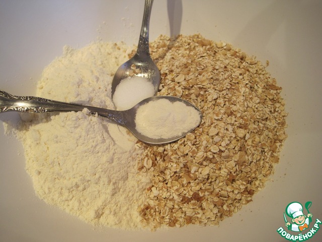 Духовку сразу включаем на разогрев t 210-220 градусов. Смешиваем муку, хлопья "5 злаков" от Мистраль, соль и разрыхлитель.