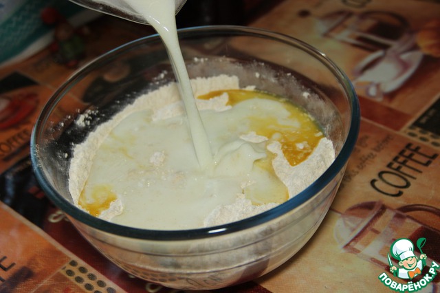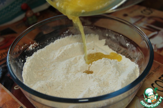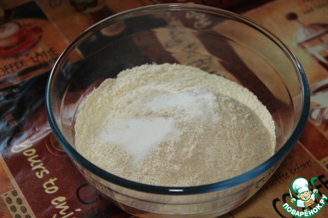 Смешать все сухие ингредиенты: муку, соду, соль.