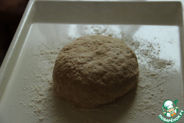 Противень посыпаем мукой и кладем на него наш хлебушек.