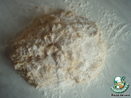 Вот тесто приобрело форму, которую можно выложить на стол и вымешивать руками. Стол посыпать мукой.