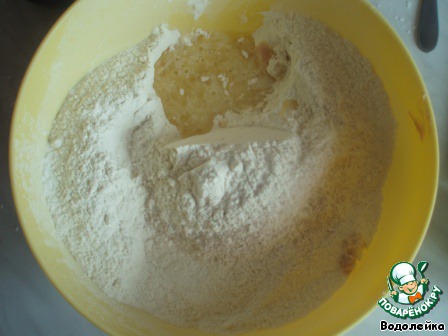 Тесто замешиваем безопарным способом. Берем смешиваем муку, дрожжи(их взять и раскрошить руками)+ сахар + соль + яйца + кокосовая стружка + масло сливочное(я его растопила) все это перемешиваем и потихоньку вливаем молоко. Продолжаем мешать до получения однородной массы, которую можно уже месить руками. Если муки мало, значит добавить еще.