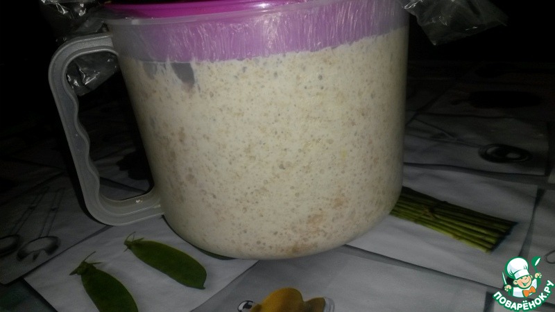Поставьте на ночь (либо, если закваска была освеженная, то на 1,5-2 часа) до увеличения объема вдвое.
