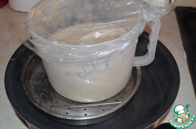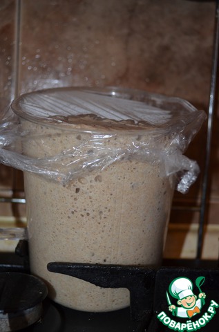 Затяните пленкой и остаьте для брожения на 12-18ч. при комнатной температуре