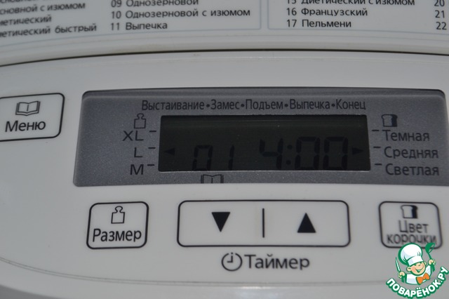 Выбираем режим "Основной", размер - L, корочка - "Средняя"