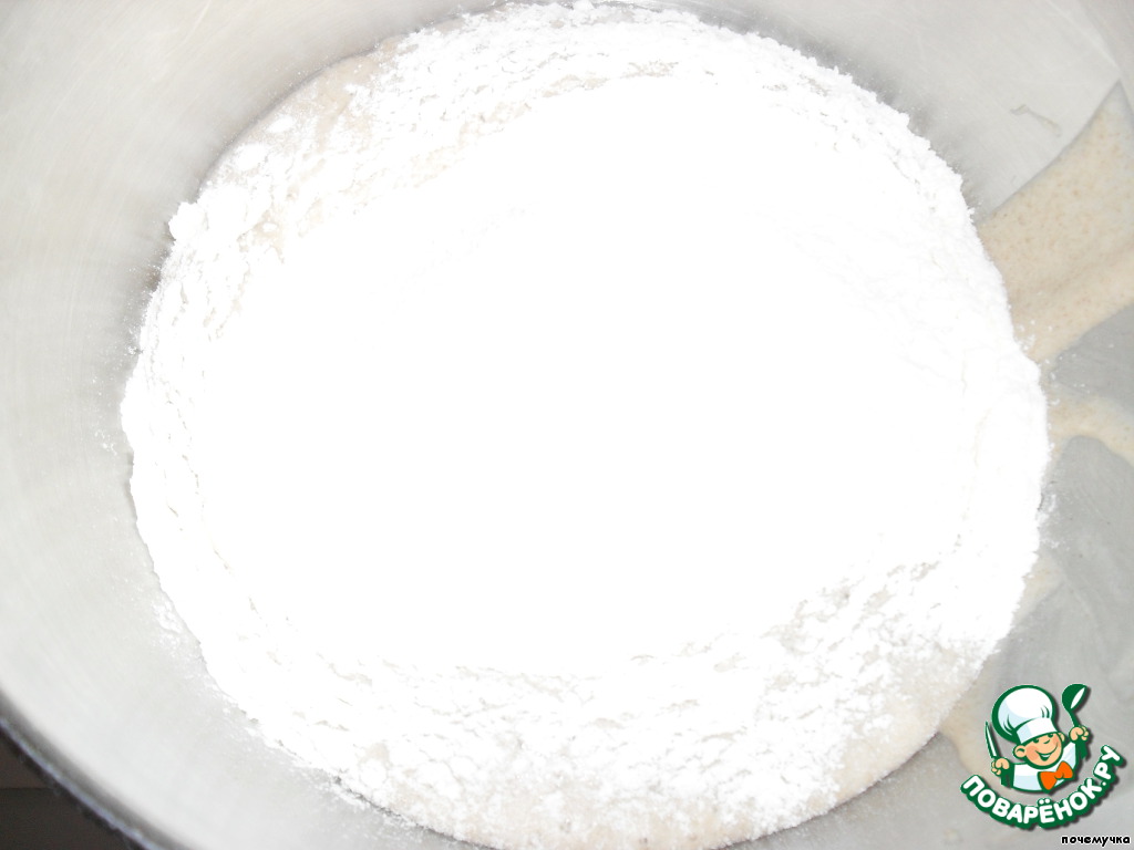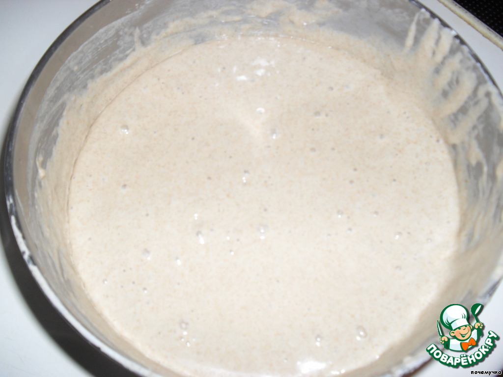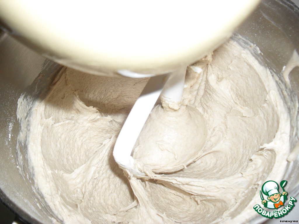 Это моя уже подошедшая опара. Я перелила ее в чашу миксера.
