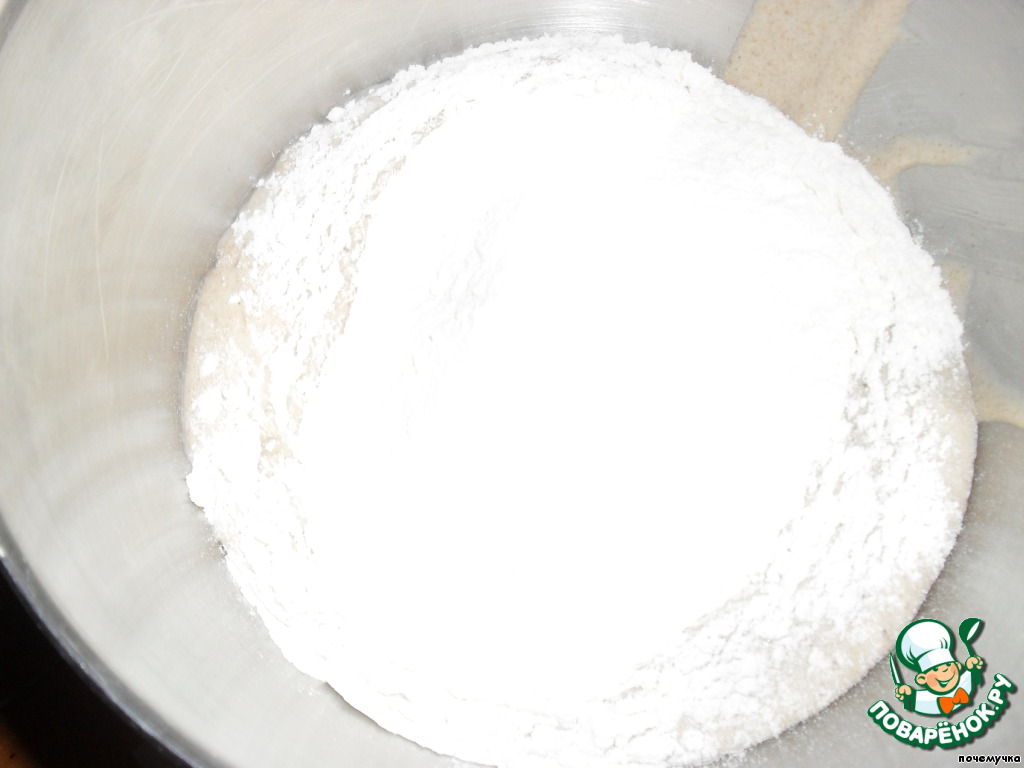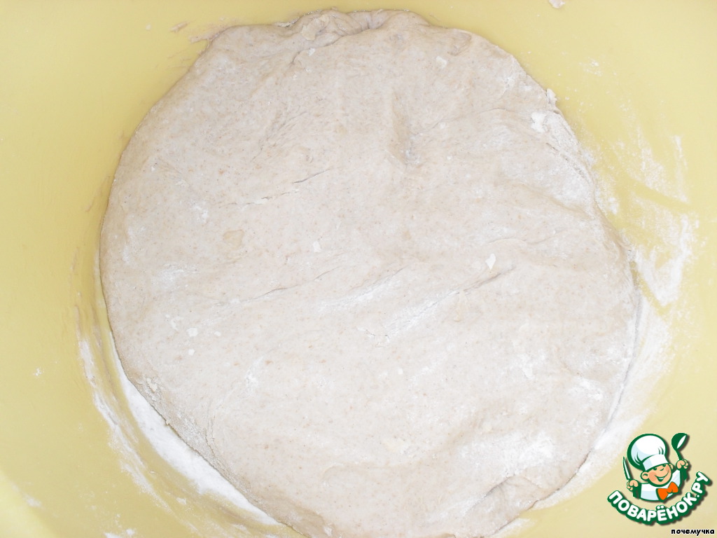 В общем, тесто стоит 2,5 часа. Первую обминку мы сделали через 20 мин., вторую - через 90 мин.