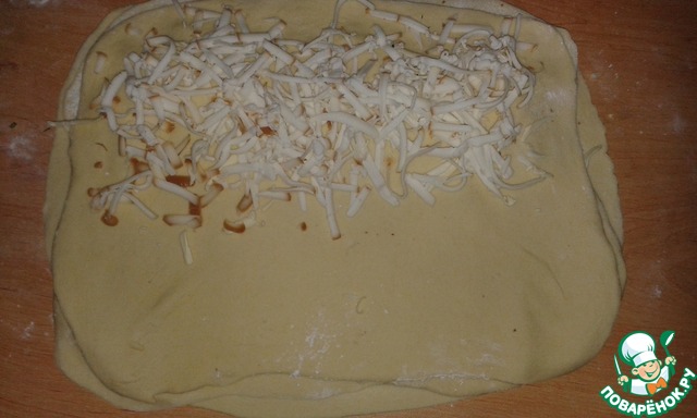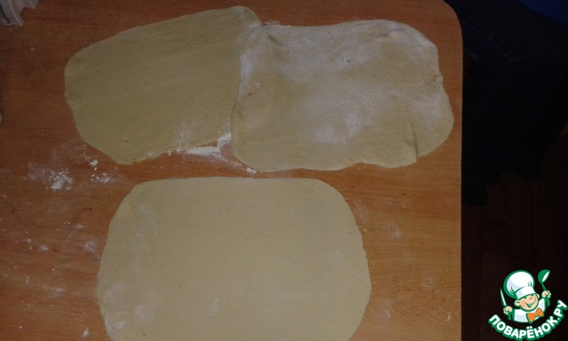 Каждую часть раскатаем в тонкий прямоугольник.