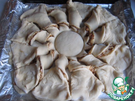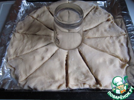 2. Разрезаем вокруг стакана тесто на лепестки. У меня получилось 12 лепестков.
