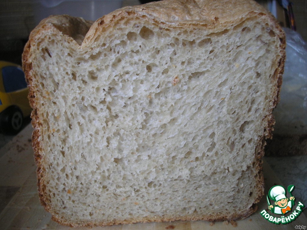 | С моей стороны было бы просто подло не поделиться с вами своим вариантом рецета ржаного хлеба с тмином для ХП, т. к. такого соотношения продуктов ни у кого не нашла. Этот хлеб стал самым-самым любимым в нашей семье. Муж просит только его. А на днях пекла его на ДР мужа, так его смели, как будто это было одно из специальных угощений. Хлеб очень воздушный и резиновенький. |
