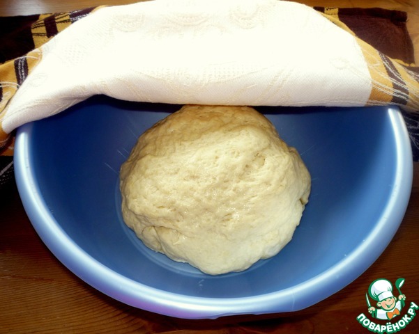 Тесто. Добавим к подошедшей опаре соль и остальную муку и замесим тесто. При замесе можно смазывать тесто растительным маслом, чтобы оно было более мягким и не липло к рукам. Муки может понадобиться чуть меньше или больше, чем указано в рецепте, поэтому ее лучше добавлять постепенно небольшими порциями. Убираем его на 1,5 часа для подхода в теплое место.