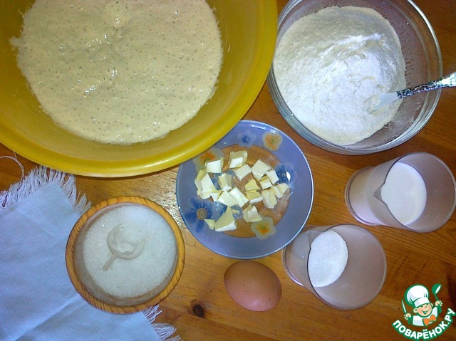 соль 2г, сахар 50г, 1яйцо, 125мл молока, 30г сливочного и 12 (ок. 1 ст