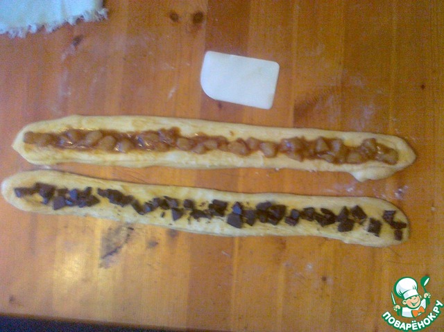 длинные плоские «язычки». Выкладываем на каждую часть свою начинку.