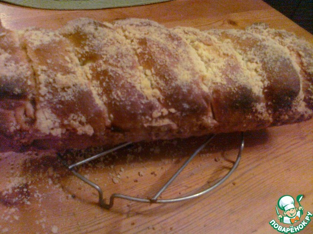 аккуратно подошедшую косу яйцом и посыпаем штрейзелем. Ждем еще 5