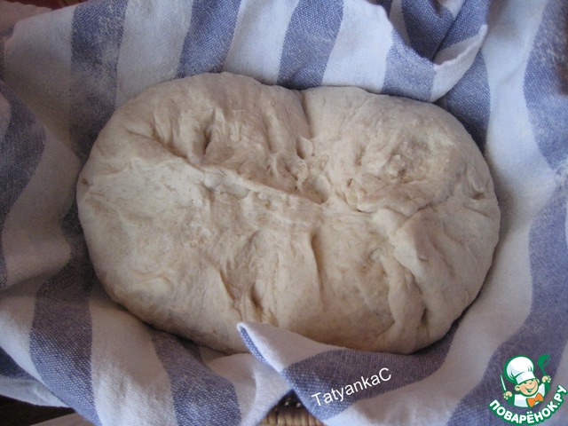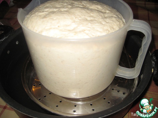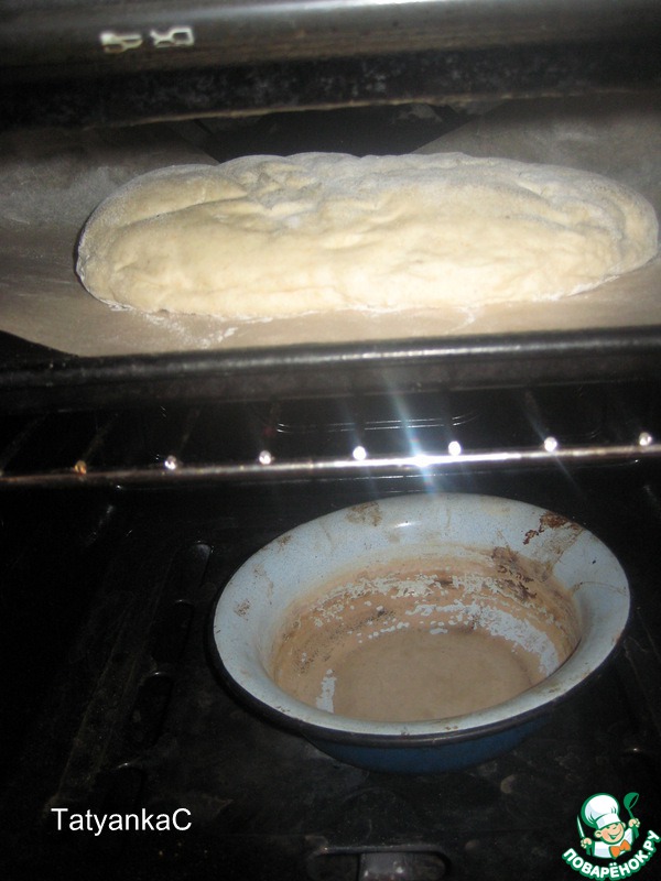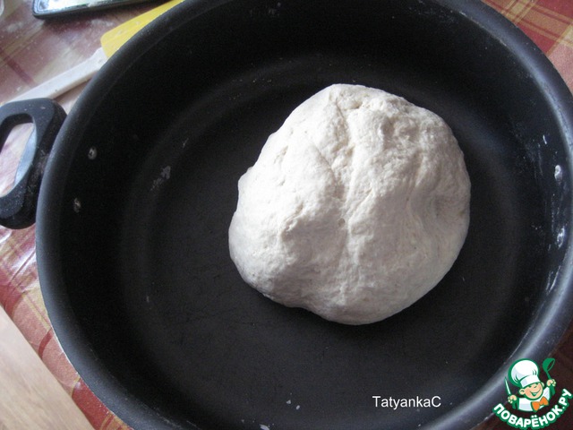 Кладем тесто в чистую миску, смазанную растительным маслом, накрываем пищевой пленкой либо полотенцем. Ставим в тепло на расстойку примерно на 2часа, чтобы тесто увеличилось вдвое. Через пол часа после начала брожения-обминаем наше тесто.