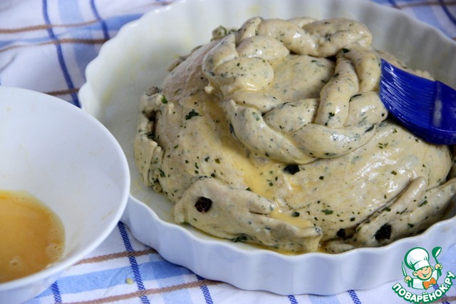 Смазать поднявшийся хлеб взбитым яйцом (достаточно - 0,5 шт.)