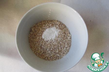 Отруби смешиваем с солью, специями и разрыхлителем.