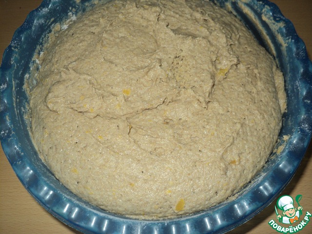 Тесто оставляем в покое на 3-4 часа (у меня оно"подошло" за 2,5 часа). Делаем обминку и выкладываем в форму.