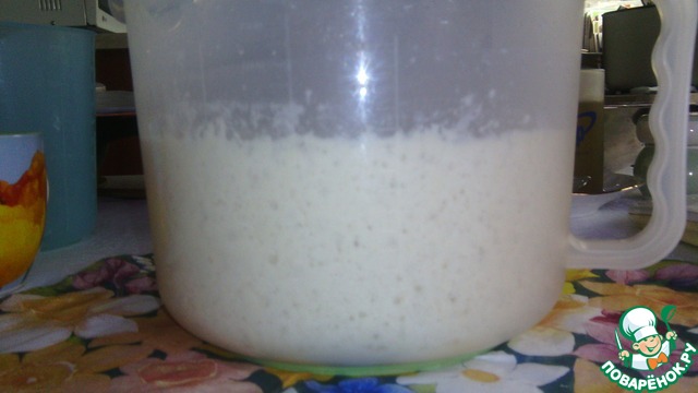 Это очень жидкая опара, поэтому она будет бродить сама в себе и практически не поднимется. На поверхности опары будет симпатичная пенная шапочка, ну и запах конечно кисловато-фруктовый. Не передерживайте опару больше 12 часов, а то хлеб будет сильно кислить.