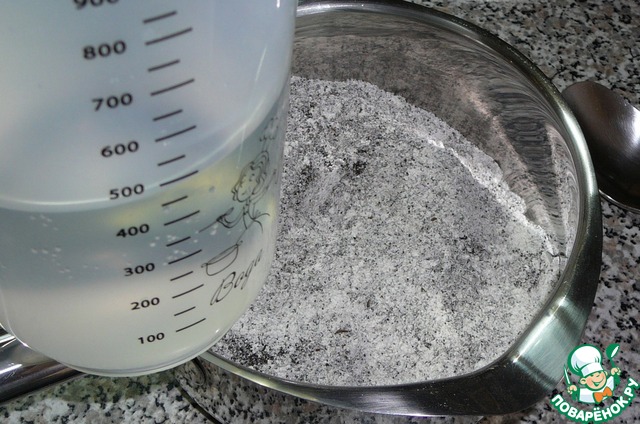 Хорошенько перемешиваем, накрываем пленкой и оставляем бродить 3-4 часа.